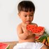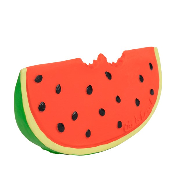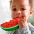 Avant même la diversification alimentaire, bébé peut faire connaissance avec les fruits et légumes de façon originale : en mâchant ce jouet de dentition en forme de pastèque.