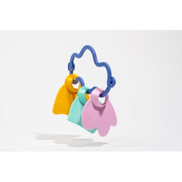 Le hochet est refermé par un crochet, permettant ainsi de retirer les formes si nécessaire en toute sécurité pour l’enfant. Quand votre enfant aura grandi les pièces pourront être utilisées séparément pour imaginer d’autres types de jeux, grâce à leurs formes iconiques.