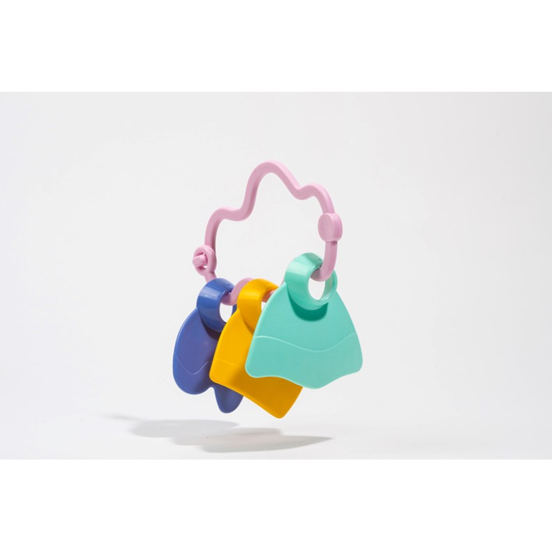 Le hochet est refermé par un crochet, permettant ainsi de retirer les formes si nécessaire en toute sécurité pour l’enfant. Quand votre enfant aura grandi les pièces pourront être utilisées séparément pour imaginer d’autres types de jeux, grâce à leurs formes iconiques.