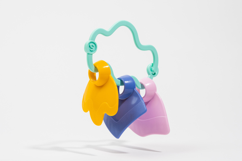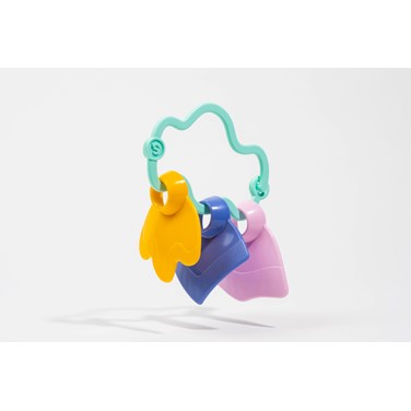 Le hochet est refermé par un crochet, permettant ainsi de retirer les formes si nécessaire en toute sécurité pour l’enfant. Quand votre enfant aura grandi les pièces pourront être utilisées séparément pour imaginer d’autres types de jeux, grâce à leurs formes iconiques.