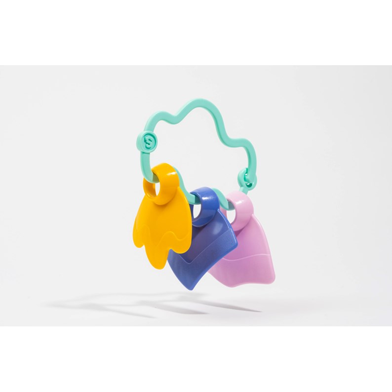 Inspiré directement des formes Simple, le hochet en forme de nuage est composé de 3 palmes de différentes formes, couleurs et textures. Elles s’emboîtent les unes avec les autres afin de développer le sens de l’observation et du jeu des enfants. Grâce aux différentes textures propres à chaque pièce, le ressenti des enfants sera différent au toucher et stimulera son sens de la découverte.