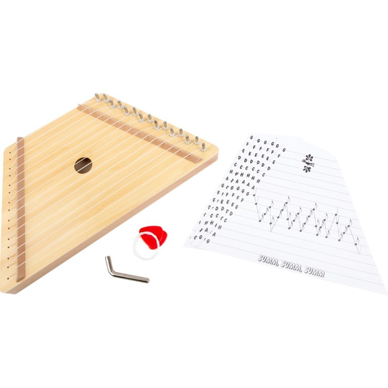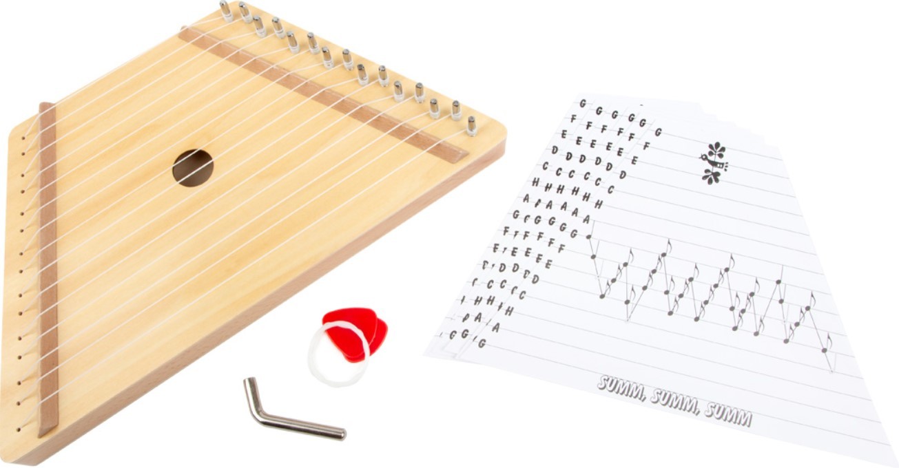 Les cordes souples en plastique et le petit format de la cithare sont parfaitement adaptés aux petites mains des enfants.