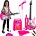 Pack guitare électrique enfant + microphone + amplificateur rose