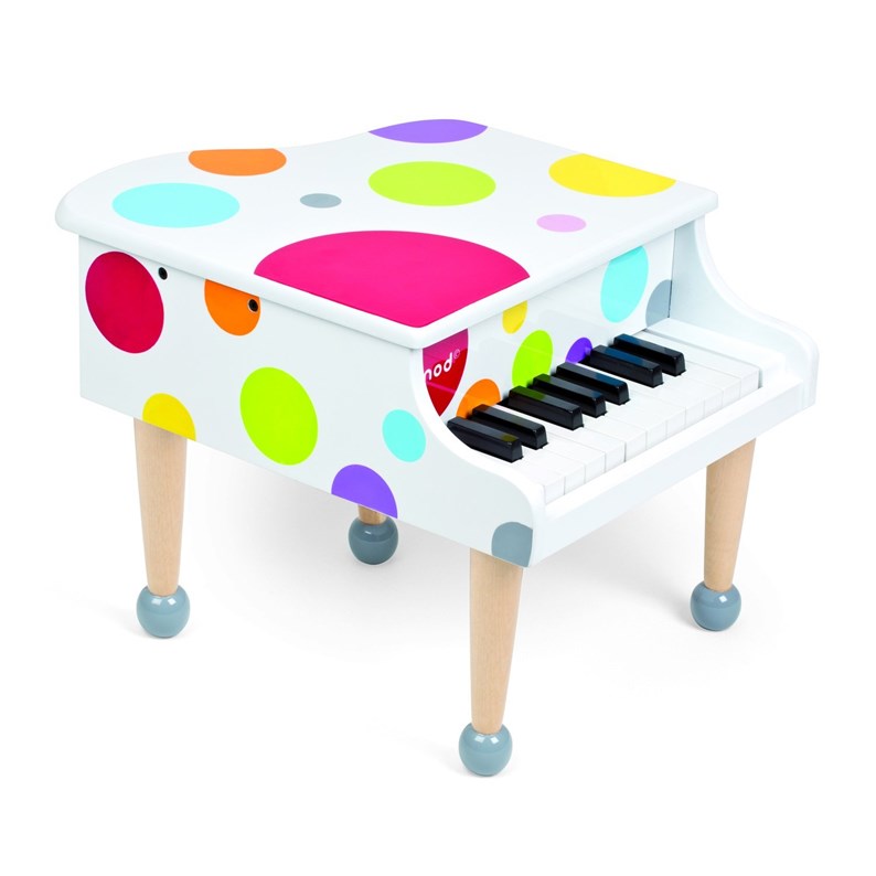 Joli piano en bois blanc à pois Janod. Ton premier piano pour apprendre à faire tes premières notes !