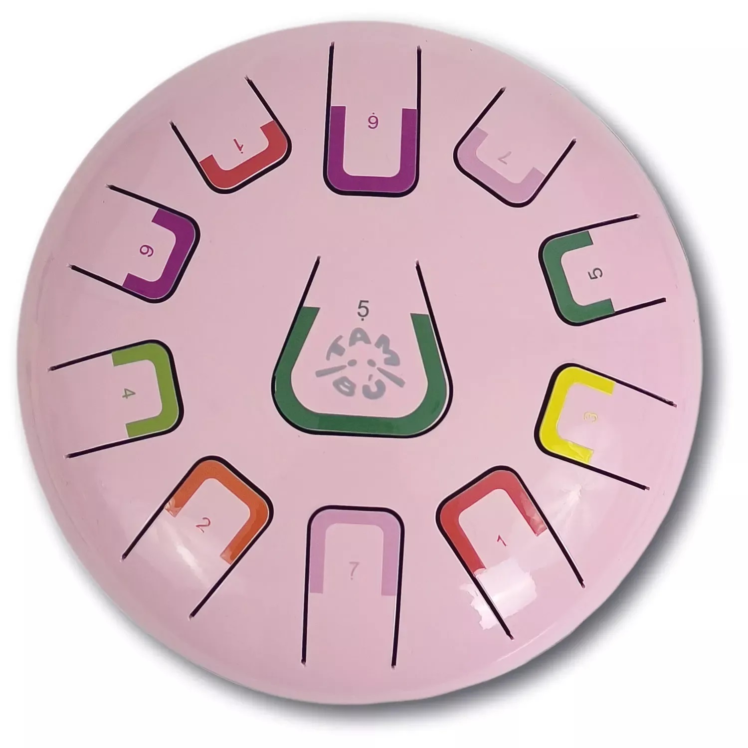 Ce tambour comporte 11 notes différenciées par des chiffres et des couleurs qui émettent des sons harmoniques relaxants. Il peut être joué de différentes manières, produisant chacune une intensité sonore différente : avec des baguettes, du bout des doigts ou avec les mains.