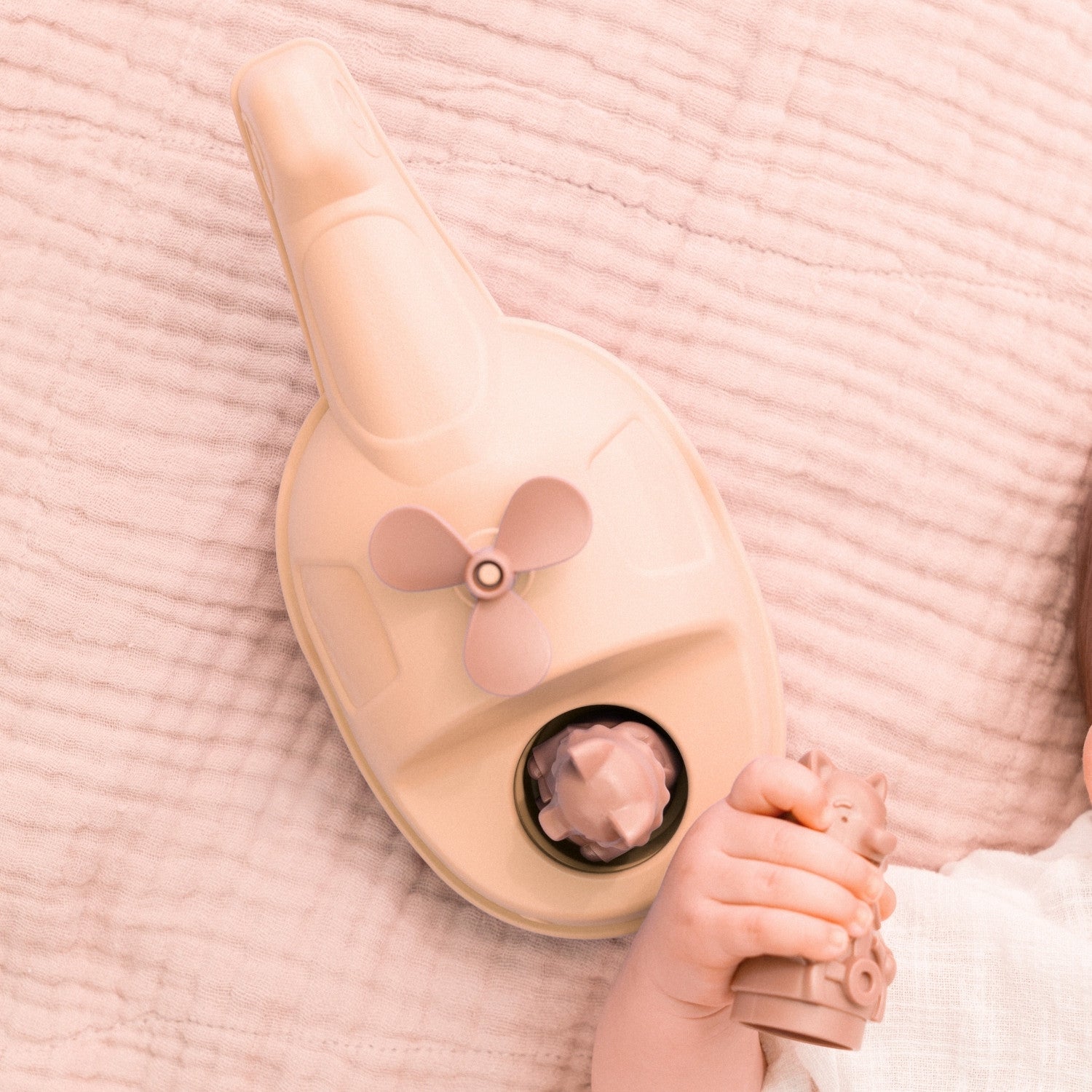 Jouet de bain made in france en matière recyclée hélicoptère de mr renard