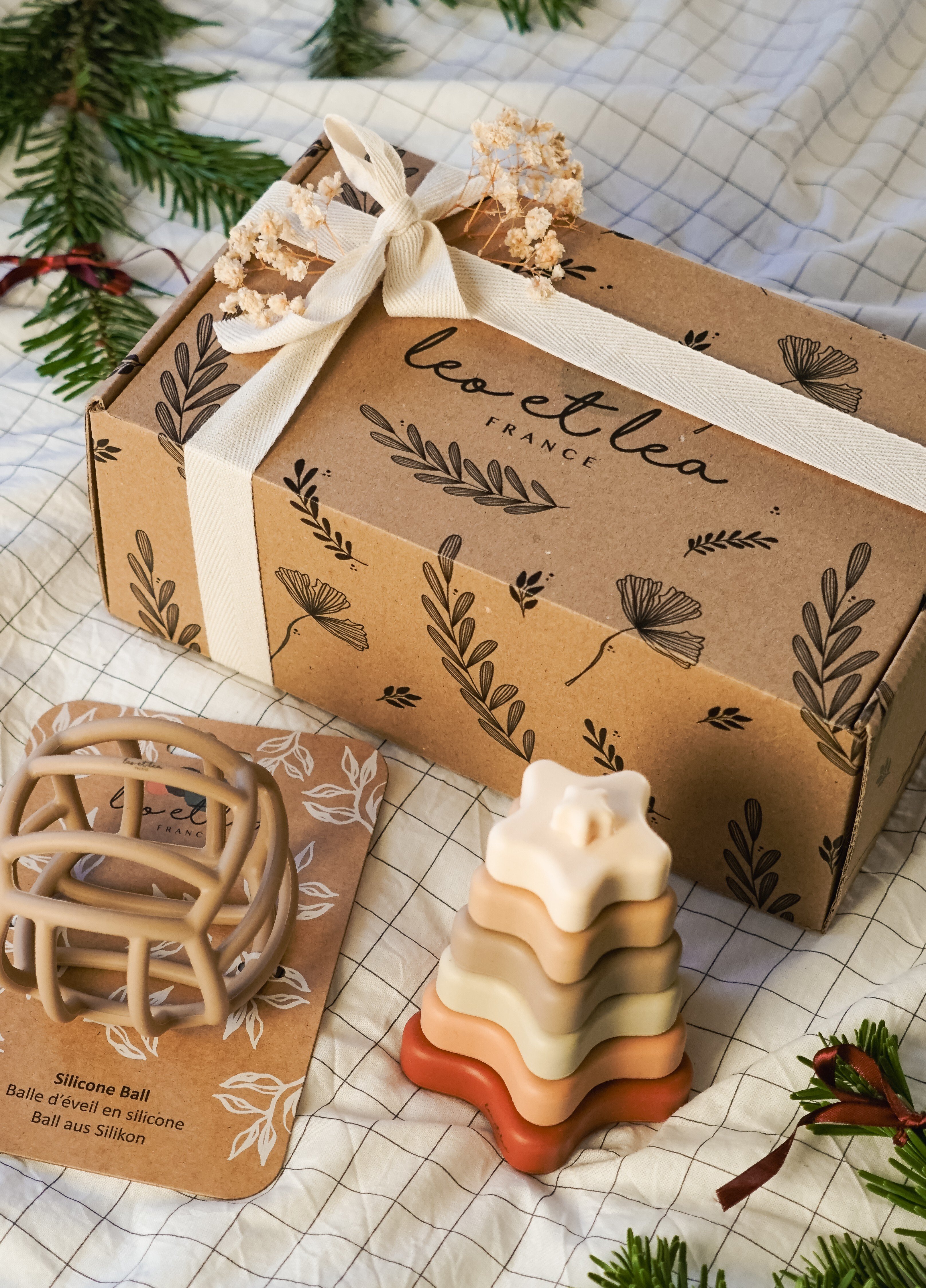 Préemballé dans une boîte cadeau en carton kraft, le coffret cadeau leo et lea plaira aux familles qui s'adaptent à la vie avec un adorable petit.