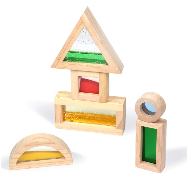 Contient 6 blocs sensoriels : 2 rectangles, 1 cercle, 1 triangle, 1 carré et 1 demi-cercle.