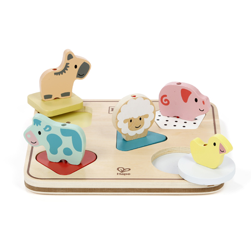 Ce puzzle des animaux de la ferme accompagne le développement sensoriel des tout-petits de façon ludique.