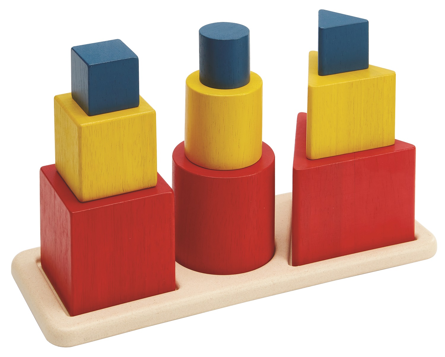 Puzzle d'encastrement 3 formes, un jouet d’éveil et d’apprentissage en bois de la marque Plan Toys. Référence PT5463.Cet article ne convient pas aux enfants de moins de 3 ans.Age minimum recommandé : 1 anAge maximum recommandé : 3 ans