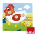 Puzzle - Poule (4 pièces), un puzzle en bois premier âge de la marque Goula, réf 53052.