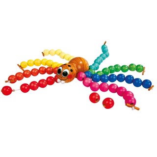 Cette araignée en perles de bois massif ne fait de mal à personne. Bien au contraire, elle forme la motricité fine.