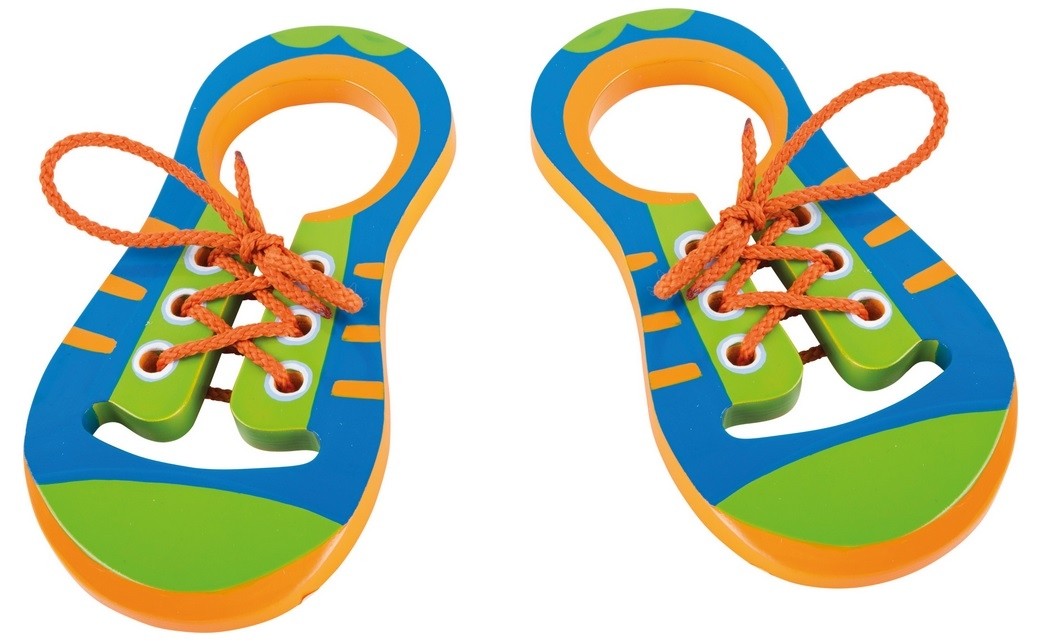 Grâce à l'espace arrière, l'enfant peut tenir la chaussure avec son propre pied et nouer les lacets.