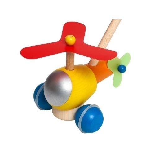 Jouet à pousser HÉLI L'HÉLICOPTÈRE. Avec une hélice pour aller plus vite. Fascinant pour les petits marcheurs : quand Héli l'hélicoptère est poussé, son hélice tourne. Des premiers pas encore plus passionnants! Un jouet premier âge à pousser en bois fabriqué en Allemagne par la société Selecta. Réf : 1657