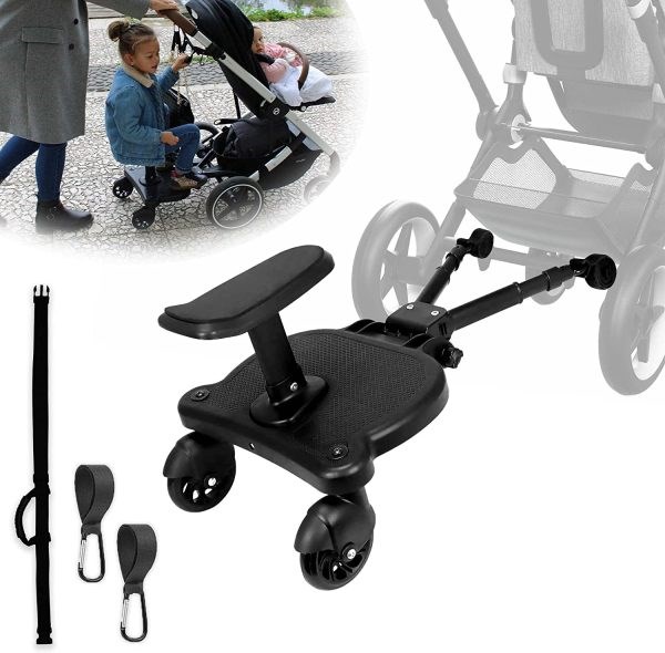 PORTE UN ENFANT SUPPLÉMENTAIRE : Parfait pour deux enfants : un dans la poussette et un enfant de 2 à 6 ans sur la planche. L'enfant ne doit pas peser plus de 25 kg.