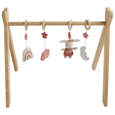 Dès la naissance, cette arche stimule la curiosité de bébé grâce à ses 4 adorables jouets suspendus. En pin massif naturel, elle propose une structure stable et esthétique, parfaitement adaptée à une utilisation sur un tapis ou dans une chambre d’enfant. Bébé observe, tend la main, s’émerveille… Un véritable petit moment de magie à chaque séance de jeu.