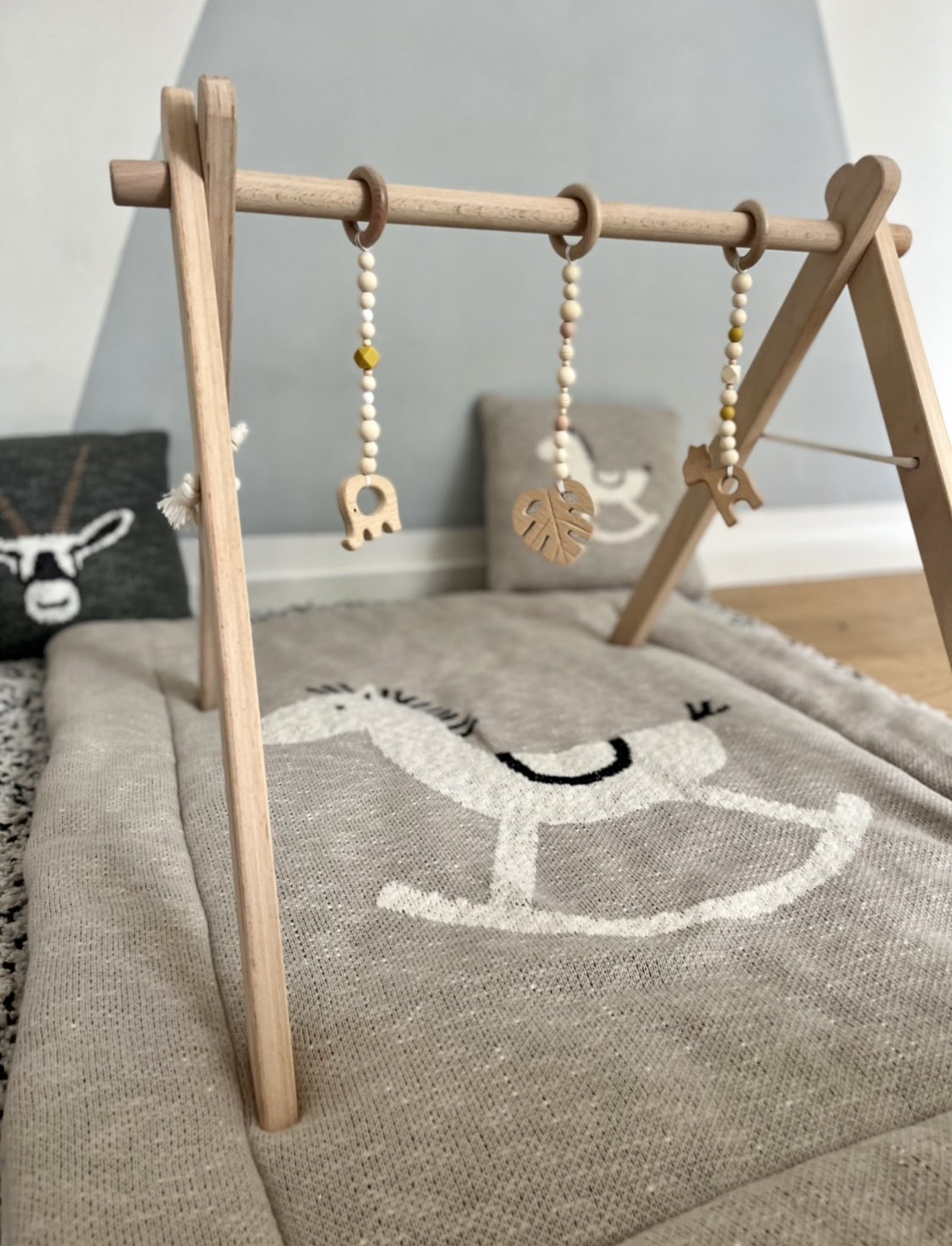 MaPetiteTribu vous propose des suspensions à attacher pour amuser bébé qu’a adoré notre petite fille Céleste lorsqu’elle était bébé et qu'apprécie notre fille Olympe actuellement. L’arche peut aussi servir de portique pour les mobiles Montessori. L’idéal est de proposer à bébé de multiples jeux pour varier, couleurs, formes, matières, et contrastes en fonction de son évolution.