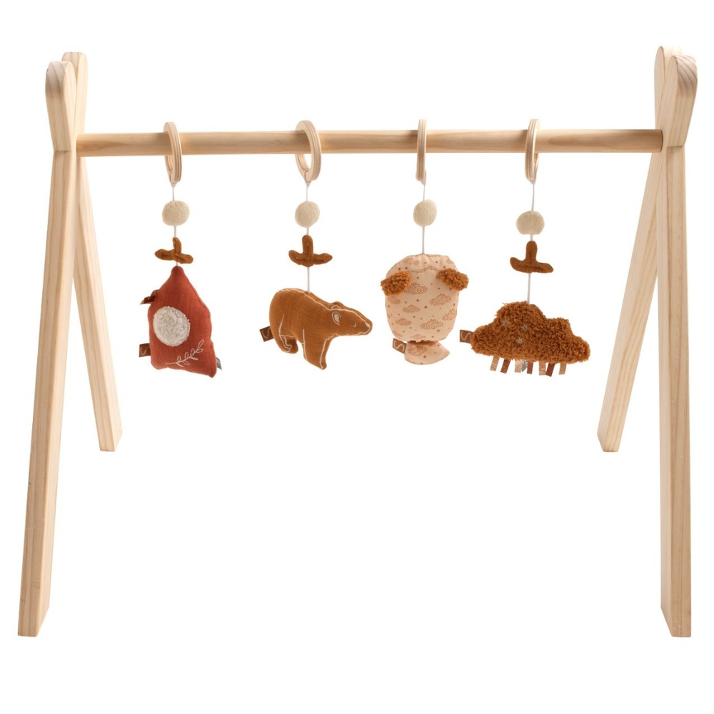 - Jouets en velours, tissu sergé et double gaze de coton.