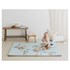 Dimensions : 110 x 140 cm. Matelas intérieur de 2 cm d?épaisseur. Housse amovible. Transformable en sac. Deux figurines sensorielles cousues et un miroir. Dessus 100 % coton biologique. Dessous 100 % polyester imperméable. Intérieur du matelas en mousse. Housse intérieure du matelas en tissu TNT anti-acariens. Motifs non contractuels ? uniquement pour le visuel du tapis roulé (en sac)