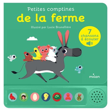- Sept comptines incontournables autour de la thématique de la ferme : « Une poule sur un mur », « Il était une bergère », « Un petit cochon pendu au plafond », « Un canard », « Savez-vous planter les choux ? », « Mon âne », « Un petit lapin ».