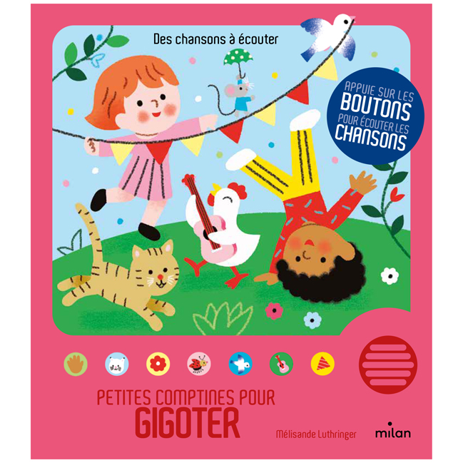 - L'enfant va pouvoir s'amuser à découvrir les parties de son corps à travers 7 comptines célèbres ("Tiens, voilà main droite" ou "Tête, épaules, genoux et pieds", "Qui se cache ? ")