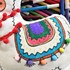 \n 1 - Décorez le coussin avec les éléments contenus dans la pochette (rubans, pompons).