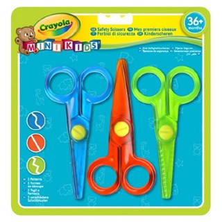 Kit de 3 ciseaux pour enfant Crayola à partir de 3 ans. Ces 3 ciseaux dont 2 cranteurs sont spécialement adaptés pour les premiers découpages des enfants. Avec les trois différentes formes, les plus petits pourront couper le papier en forme de vague, droit ou en zigzag. Ces ciseaux colorés et légers seront très appréciés par les enfants dès la maternelle. Kit de 3 ciseaux Crayola Mini Kids. - Quantité : 3. - Formes : vague, droit et zigzag. - Couleurs : bleu, rouge et vert. - Matière : plastique. A partir de 3 ans