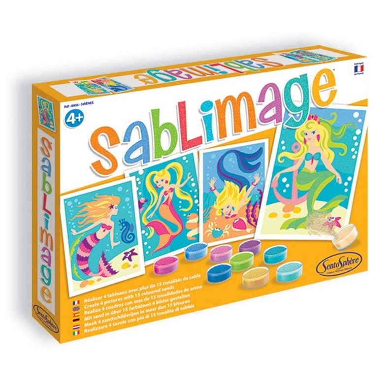 Sablimage est une activité ludique et artistique idéale pour développer la créativité, l'habileté manuelle et le sens de la couleur. Contient 16 pots de sable de couleur, 4 tableaux préencollés et prédécoupés et 1 mode d'emploi.