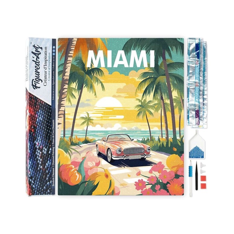 ?? Broderie Diamant – Affiche de Voyage Miami au Coucher du Soleil Kit Complet 40x50 cm