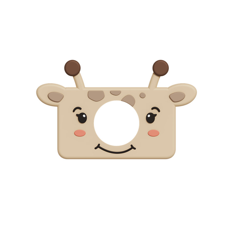 Découvrez cette incroyable housse écologique sans PVC et sans phtalates en option supplémentaire pour votre enfant ! Non seulement elle est mignonne, mais elle protège également contre les chutes et garde la caméra propre. Elle peut être facilement retirée et lavée. Collier en silicone en forme de girafe inclus.