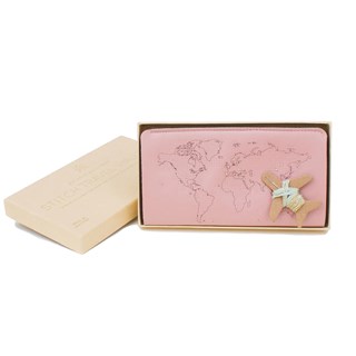 L'organisateur de voyage en cuir rose pastel luxueux est imprimé avec la carte du monde et spécialement perforé, de sorte que chaque pays visité peut être marqué d'une croix métallique! Le verso est également perforé pour pouvoir être cousu avec des initiales ou un motif, si vous le souhaitez.