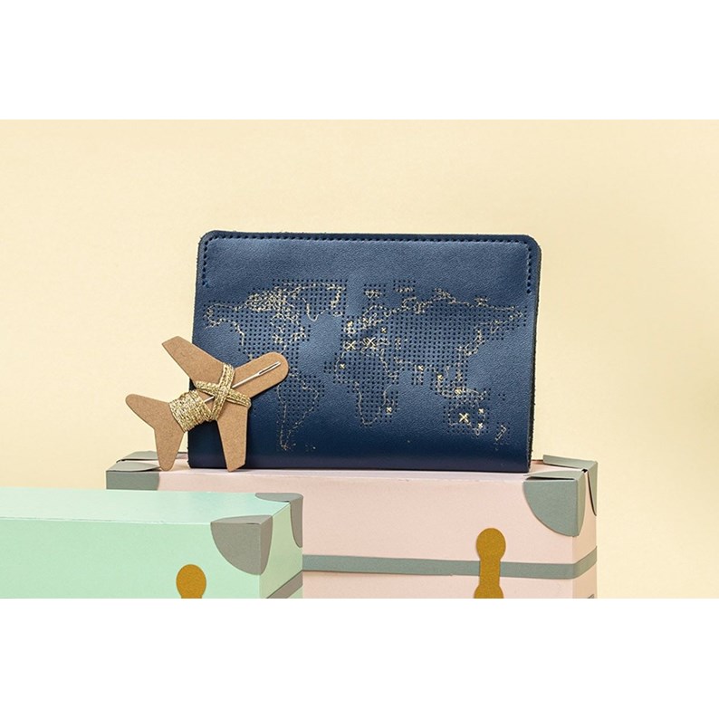 Avec un logo doré en relief à l'arrière et les inscriptions « Sew your own way » et « Travel On » gravées à l'intérieur, cette couverture est un accessoire de voyage de qualité.