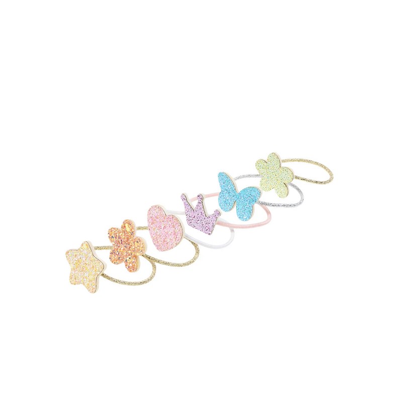 Ces adorables elastiques ornées de motifs coeur, fleur, nuages sont idéales pour apporter une touche ludique à la coiffure.
