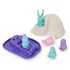 Un tampon amusant est intégré dans la base de la figure surprise, ce qui permet de laisser des traces dans la neige - euh, dans le sable. Le couvercle et le récipient en forme de montagne peuvent également être utilisés pour le moulage. En outre, la montagne offre un toboggan et deux crayons sur lesquels la figurine peut être posée.