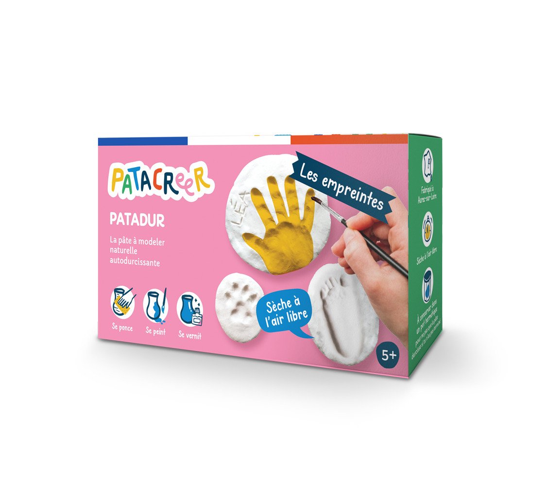 Kit Empreinte Bébé - Créez des Souvenirs Durables Découvrez notre kit empreinte bébé comprenant 2 pains de 80G de PATADUR et une notice détaillée pour apprendre à modeler en toute simplicité. Idéal pour créer des souvenirs précieux des petites mains de votre bébé ou des pattes de votre animal de compagnie. Instructions pour des Empreintes Parfaites Préparation : Suivez notre guide pas à pas pour préparer votre pâte à modeler PATADUR. Modelage : Formez délicatement l'empreinte de votre bébé ou de votre animal. Séchage : Laissez la sculpture sécher à l'air libre. Aucun four nécessaire ! Finition : Une fois bien sèche, poncez et peignez votre empreinte pour un résultat parfait. Pourquoi Choisir PATADUR ? Facilité d'utilisation : Notre pâte à modeler est simple à manipuler et ne nécessite aucun outil spécial. Sécuritaire pour les bébés : PATADUR est sans danger pour la peau délicate des bébés. Résultat durable : Après séchage, la sculpture peut être peinte et vernie, conservant ainsi vos souvenirs pour des années. Créez des Empreintes Bébé Inoubliables Avec notre kit empreinte bébé, transformez chaque moment en un souvenir tangible. Parfait comme cadeau pour les nouveaux parents, notre kit permet de capturer les moments précieux de manière artistique et durable. Commandez votre kit aujourd'hui et commencez à créer des souvenirs éternels avec PATADUR, la pâte à modeler préférée des familles pour les empreintes bébé et les empreintes d'animaux de compagnie.