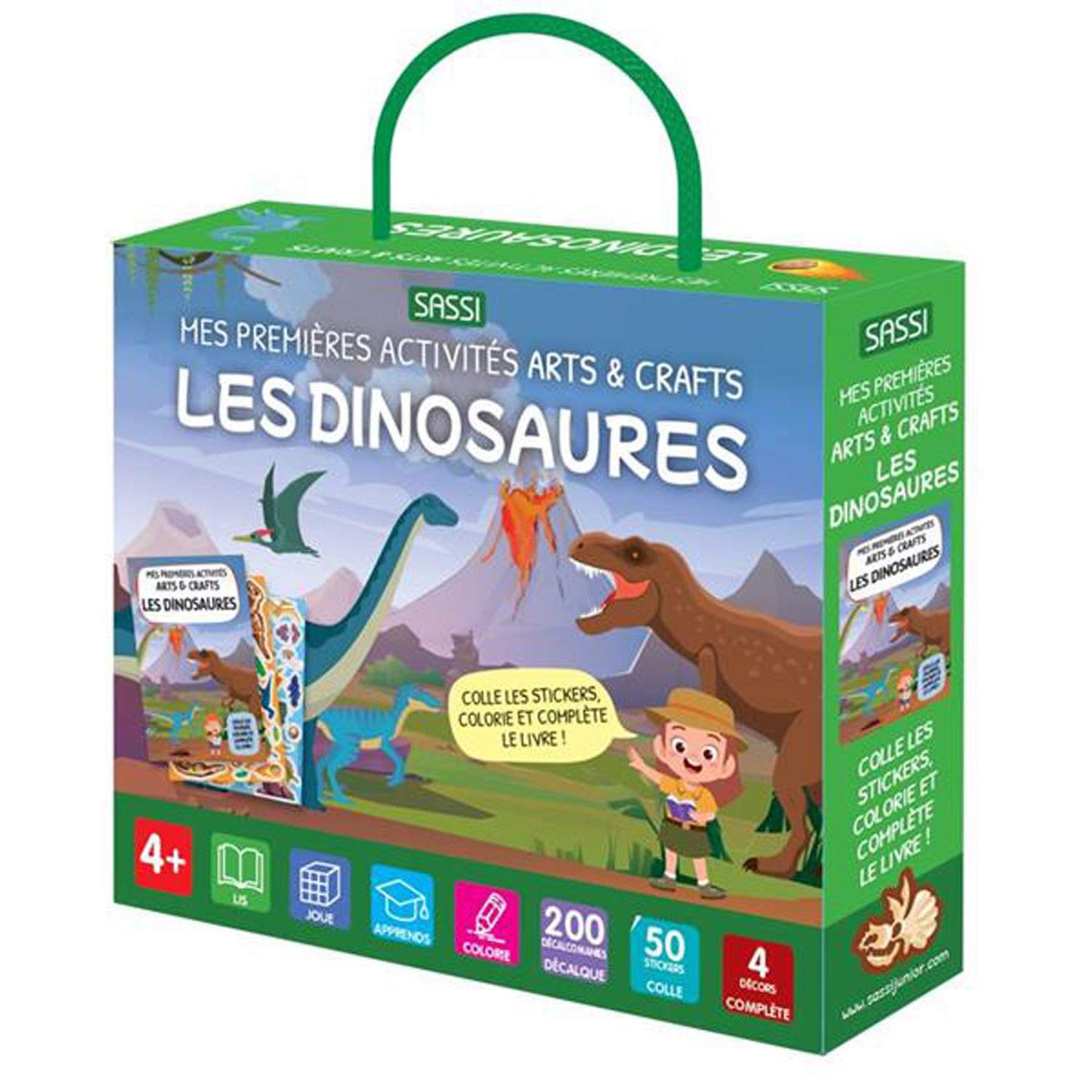Le coffret Arts & Craft Les dinosaures de chez Sassi est idéal pour développer la motricité fine , stimuler l'apprentissage et améliorer la concentration tout en s'amusant ! Colorier, placer des stickers et apprendre à dessiner de manière ludique dès 4 ans sur le thème captivant des dinosaures. Parfait pour occuper les enfants pendant les vacances scolaires !Composé d'un livre de 16 pages avec activités manuelles, 100 stickers, 4 décors à compléter, 200 décalcomanies à sec et son super stylo spécial décalquage !Pour tout connaître sur le coffret Arts & Crafts - Les dinosaures :