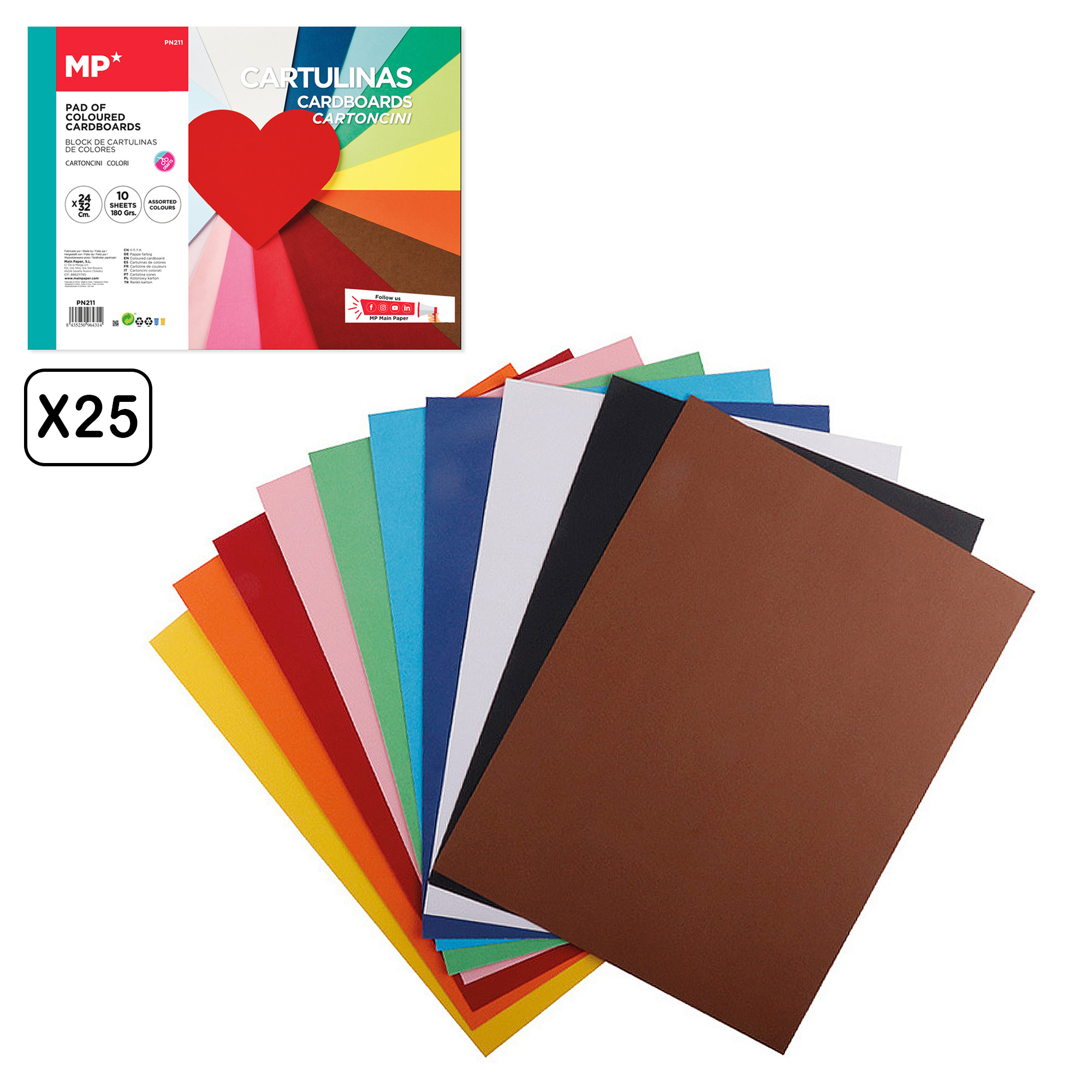 25 packs de blocs en carton couleur 10 feuilles 180 g