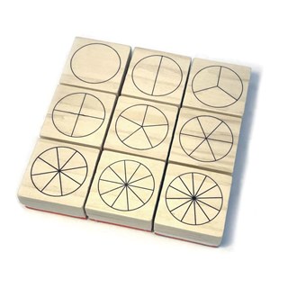 Tampons en bois et caoutchouc pratique pour faire des manipulations sur les fractions.
