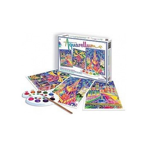 Aquarellum est une collection de tableaux développée par Véronique Debroise à partir d'une technique innovante et exclusive, celle du sertissage sur papier vélin. Cette technique permet de réaliser des tableaux d'un grand raffinement: le pinceau ne déborde pas, les motifs apparaissent comme par enchantement dès que l'on passe les encres, les couleurs surprennent par leur éclat.