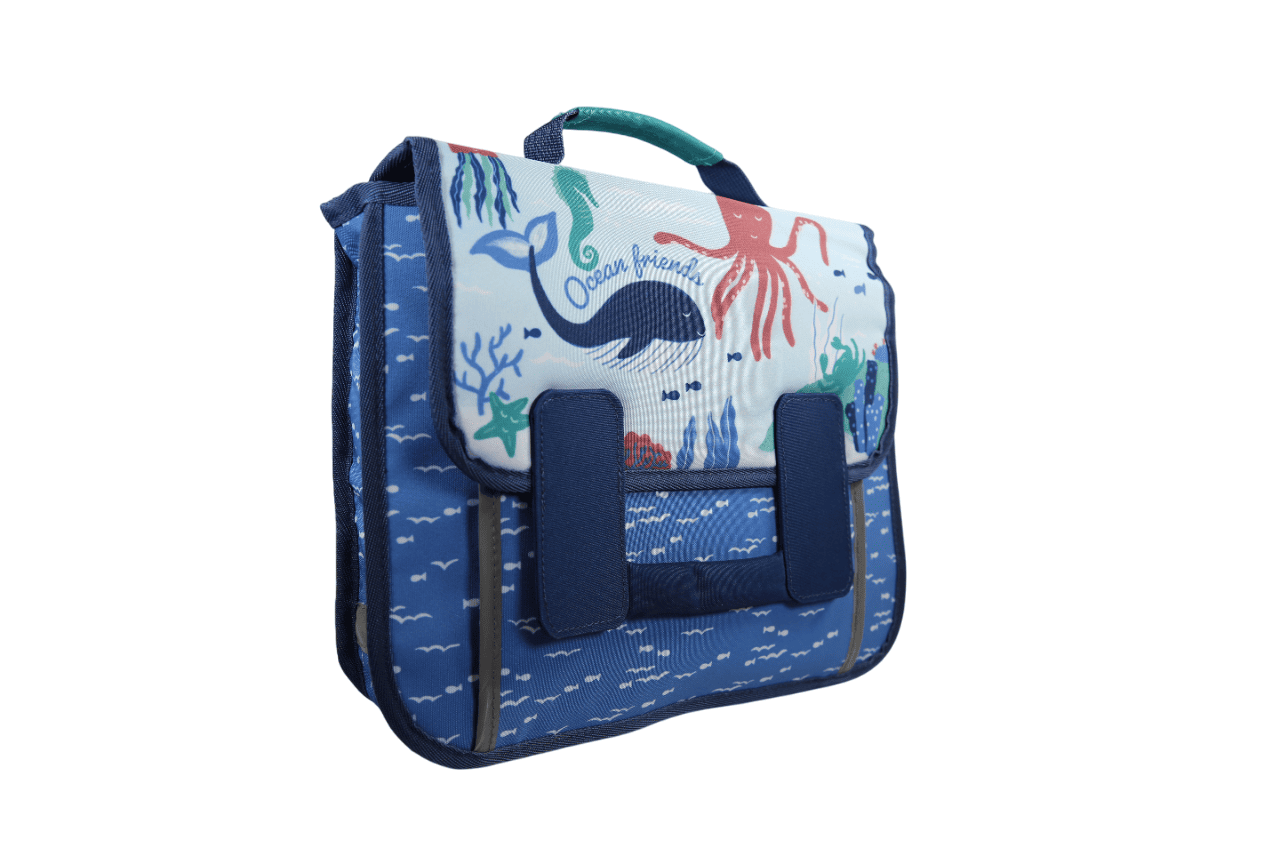 Le Cartable recyclé Ocean est le compagnon idéal de votre enfant pour ces premiers pas à l'école ou à la crèche.