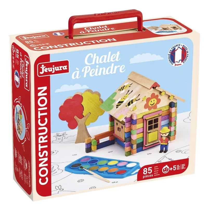 Chalet en bois à peindre 85 pièces, un jeu de construction fabriqué en France par Jeujura. Référence 8096.Cet article ne convient pas aux enfants de moins de 3 ans.Age minimum recommandé : 4 ansAge maximum recommandé : 10 ans
