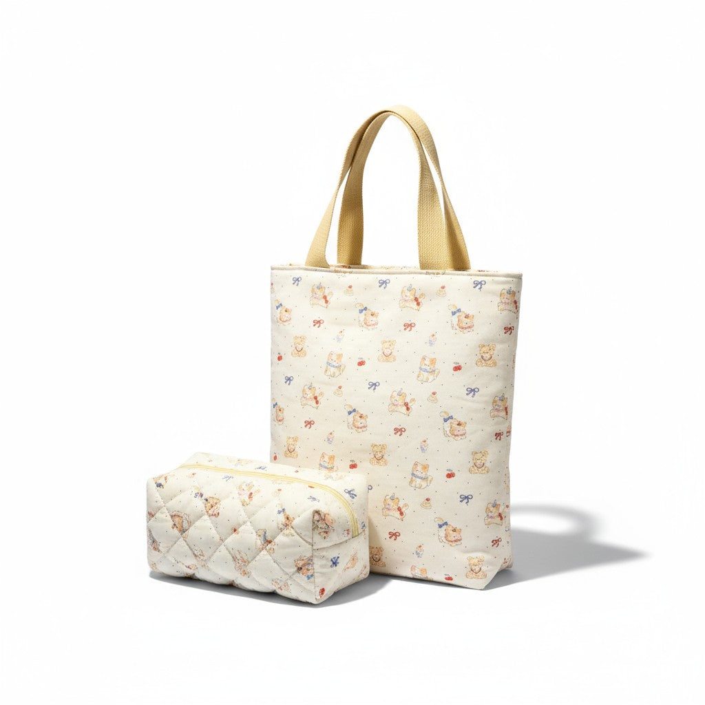 Ce coffret réunit deux indispensables du quotidien, parfaits pour les sorties, les voyages ou comme cadeau original. Avec ses motifs de chats et oursons câlins , il allie fonctionnalité et mignonnerie pour accompagner votre style en toute circonstance.