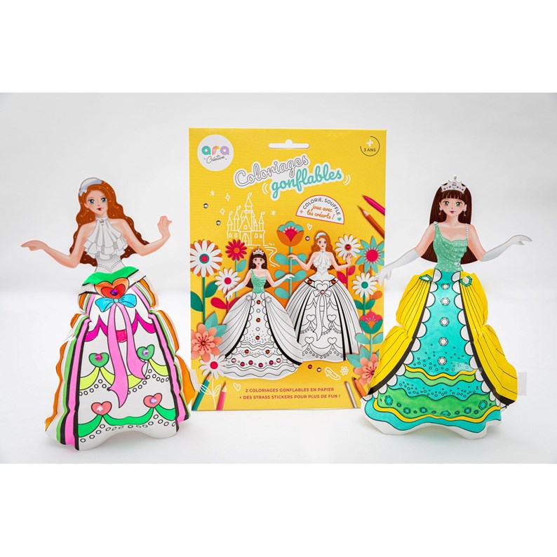 Découvrez nos Créarts Princesses, nos coloriages gonflables enchantés : 2 princesses au royaume de la créativité! Les robes s’animent lorsque vous les gonflez, prêtes à être coloriées selon l’imagination de vos enfants.