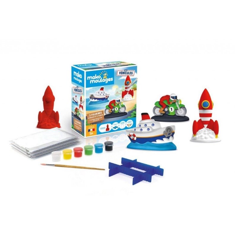 Avec ce kit créatif mako moulages, moule et décore 3 véhicules ( Fusée, bateau et moto )  En savoir plus