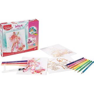 Avec Aqua'Art, l'aquarelle est super accessible aux enfants ! Une bonne dose de coloriage au crayon aquarellable, un peu d'eau appliquée avec le pinceau à réserve, et le tour est joué ! Les enfants créent de magnifiques tableaux aquarelles au rendu métallisé unique. Aqua'Art permet à l'enfant de développer sa créativité, sa concentration et son imagination, tout en s'amusant ! La simplicité de l'activité laisse aux enfants une grande marge d'inventivité. Les possibilités de création de dégradés, de mélanges et effets vaporeux sont infinies ! Une fois les affiches réalisées, elles décoreront à merveille la chambre des enfants. La boite de peinture pour enfant permet de créer 3 affiches sur le thème de la danse classique. À partir de 7 ans.