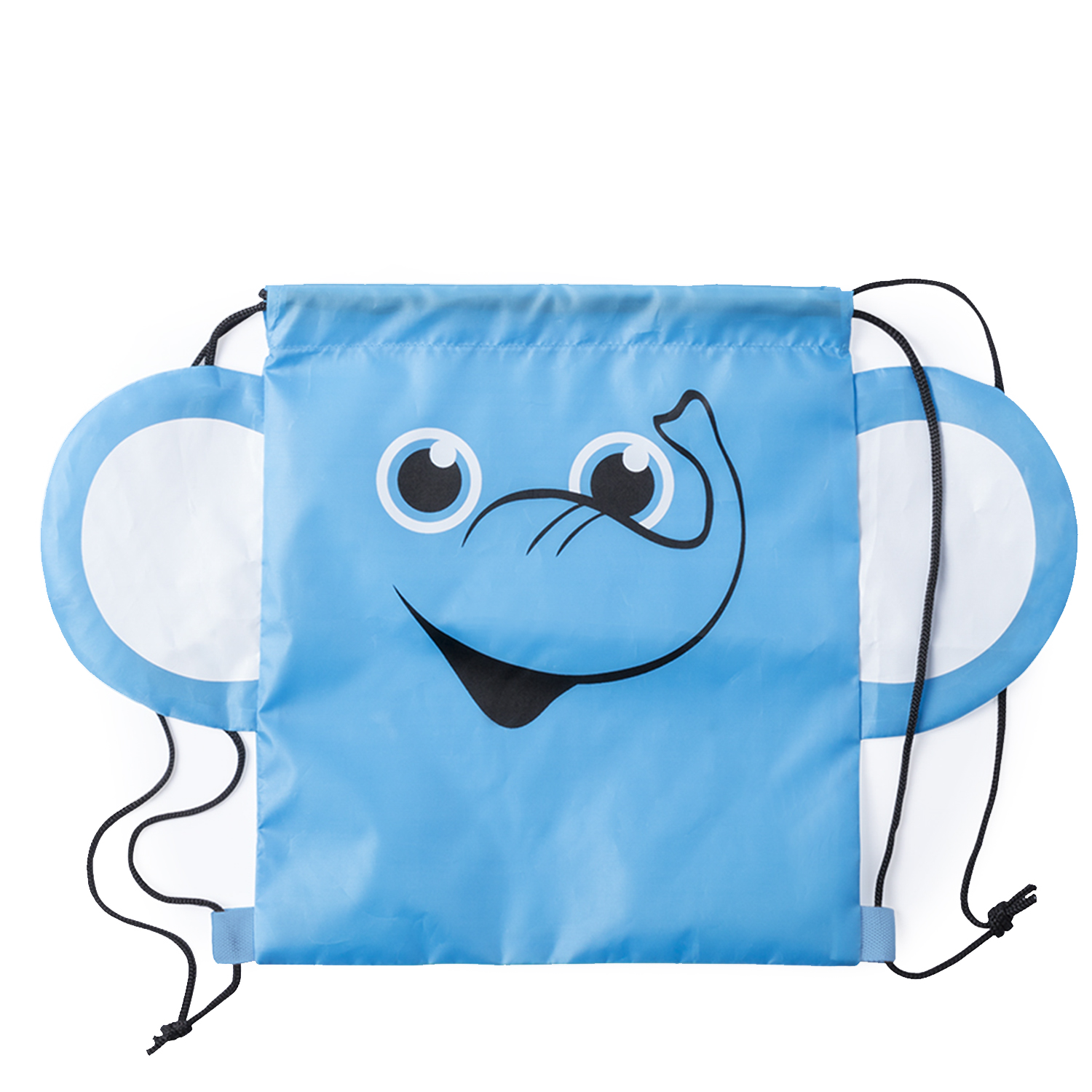 Sac à dos pliable pour enfants avec cordon de serrage : • Fabriqué en polyester 210T doux avec des motifs originaux avec des animaux. • Avec cordons noirs à fermeture automatique et coins renforcés. • Pliage de petite taille.
