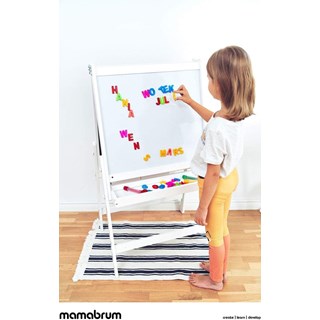 Les deux faces du tableaux sont déjà montées. Deux enfants peuvent jouer avec en même temps! La face magnétique est à nettoyer à sec avec un chiffon. Dessiner ou écrire avec un marqueur.