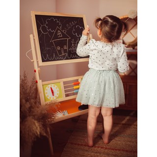 - Accessoires craies, marqueur, éponge spéciale pour nettoyer le tableau, des lettres et des chiffres magnétiques.