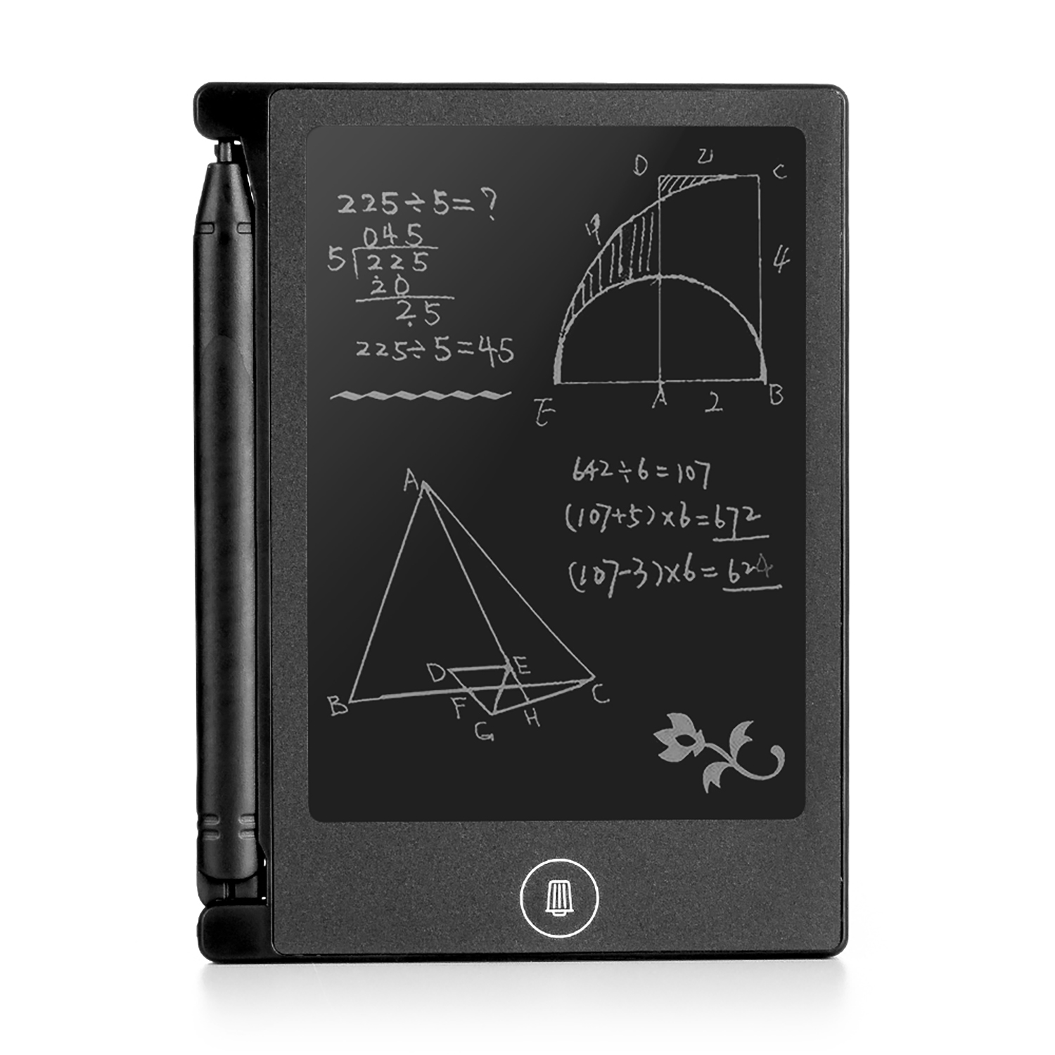 Tablette d'écriture et de dessin avec écran LCD de 4,4 pouces, idéale pour une utilisation partout et pour les enfants. Il permet d'écrire et d'effacer facilement, sur simple pression d'un bouton, avec une durée allant jusqu'à 100 000 cycles. Sensible à la pression : en appuyant doucement, vous créerez des lignes plus fines. Aucune fatigue oculaire. Comprend un stylo d'écriture, avec support intégré. Il fonctionne avec une pile bouton (incluse) avec une durée de vie allant jusqu'à 1 an.