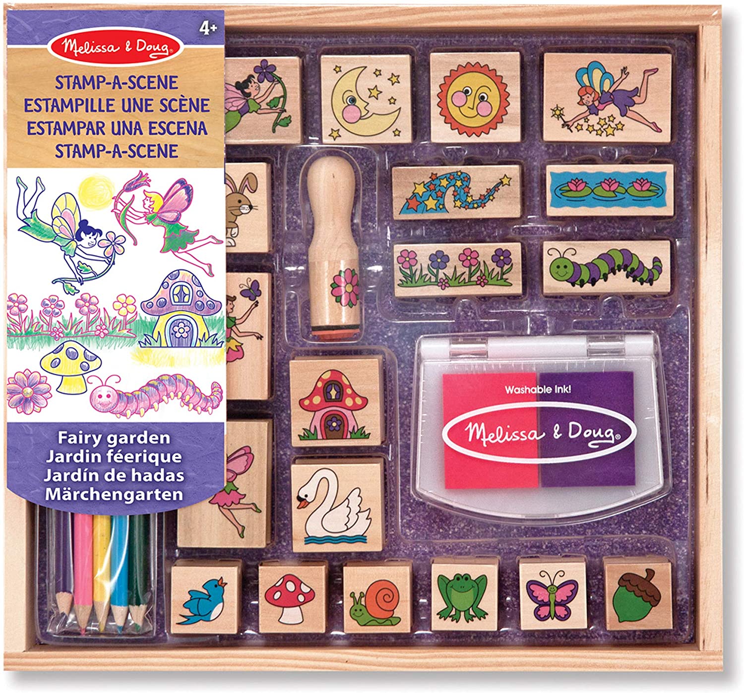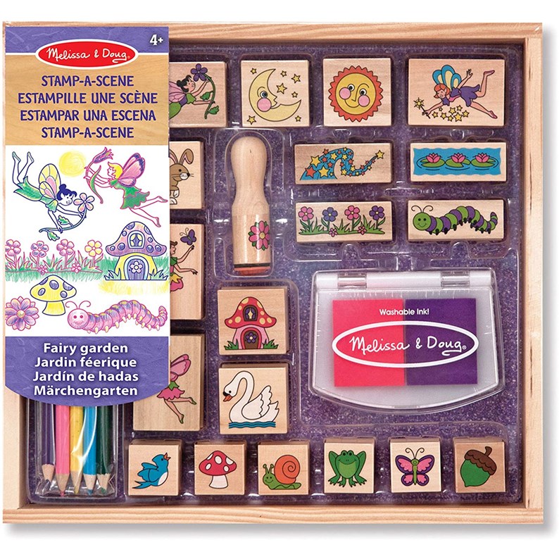 Tampons encreurs sur le thème des Jardins féeriques. Choisissez parmi cet ensemble de tampons encreurs en bois détaillées pour créer des centaines de belles scènes et plus ! L'ensemble comprend des tampons encreurs et se range facilement dans une boîte en bois.